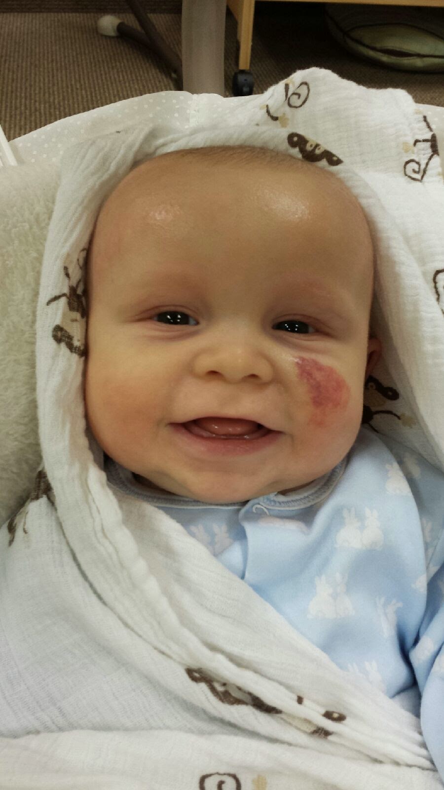 You are becoming so animated! You've mastered sitting up fully by yourself! You're starting to interact with Joey and other babies. You LOVE your teacher, Miss Nicki and HDS and have started getting sad when we leave you. This definitely breaks my heart! You still nurse/bottle every 2.5 - 3 hours and drink normaly 4 ounces. You're still unsure about baby food, but are getting better at eating! We usually feed you at night - it's always entertaining! We've given you mum mum's and you LOVE those. You're getting so much personality and it is so fun to see each change! We love you so much stinker bug. Love you to the moon and back :)